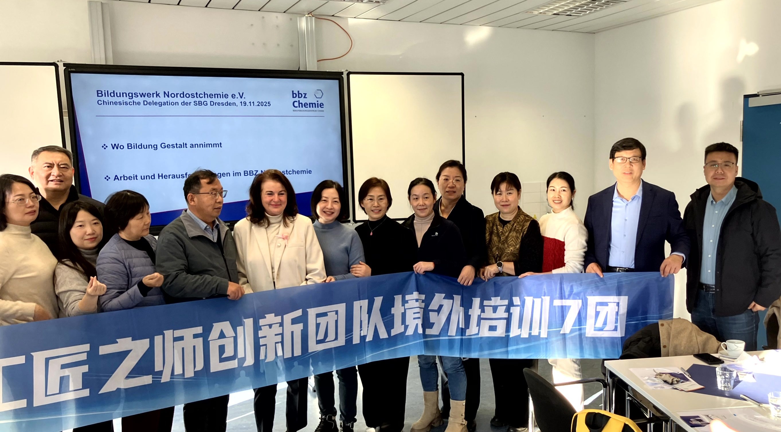 Ihre Fortbildung im Bereich Berufsbildung im Rahmen des dreiwöchigen Trainingsprogramms „China Overseas Training Project for TVET Innovation Teams“ führte unsere chinesischen Lehrkräfte am 19.11.2025 zu unserem langjährigen Berliner Partnerkooperationsunternehmen Berufsbildungszentrum Chemie - bbz Bildungswerk Nordostchemie e. V.